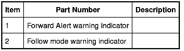 The forward alert system utilizes the Adaptive Speed Control system components. Forward alert is turned on and off independently of Adaptive Speed Control, via a switch mounted in the lower outboard knee bolster switchpack. Forward alert will notify the driver by means of a chime, and warning indicator in the instrument cluster and indication in the message center, when a target vehicle comes into range. The system will NOT use throttle or brake intervention to slow the vehicle.