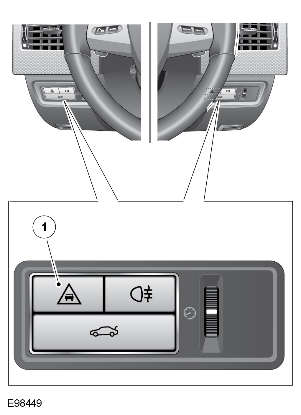 - Steering wheel control switches