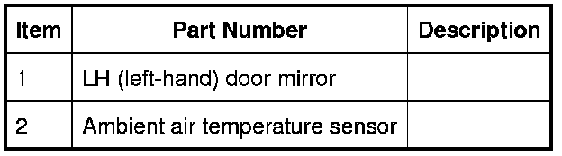 The ambient air temperature sensor is a NTC (negative temperature coefficient) thermistor that provides the ATC (automatic temperature control) module with an input of external air temperature. The sensor is hard wired to the ECM (engine control module) and its signal is transmitted to the instrument cluster on the high speed CAN (controller area network) bus. The instrument cluster acts as a gateway and transmits the ambient air temperature signal to the ATC (automatic temperature control) module on the medium speed CAN (controller area network) bus. The sensor is installed in the LH (left-hand) door mirror, and is accessed by removing the mirror glass, cap and actuator.