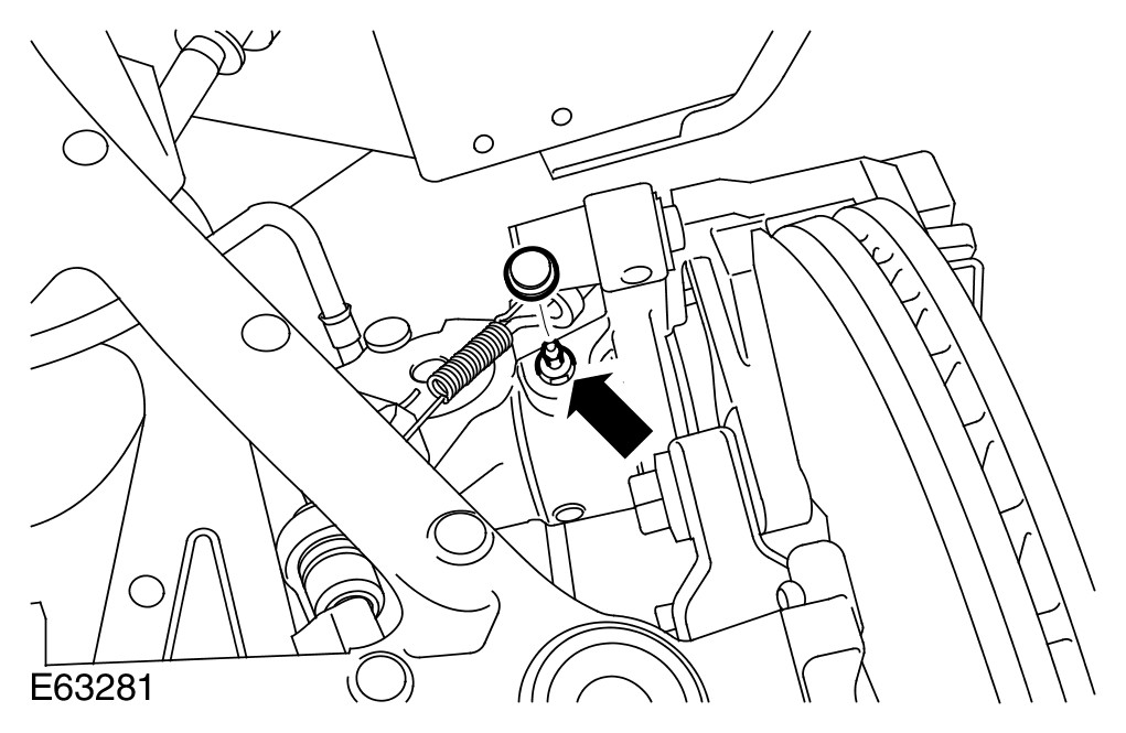 - Vehicles with high performance brakes: Tighten the front caliper bleed screw to 14 Nm.