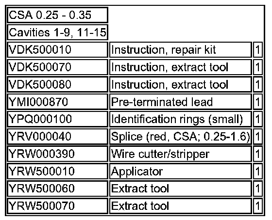 NOTE: Before commencing a repair, refer to the appropriate 'Service Repair Kit' table (see example in Table 1 below) for details of the correct tools and replacement components. The 'Service Repair Kit' table (where appropriate) can be found beneath the 'Connector Details' in the Electrical Reference Library (ERL).