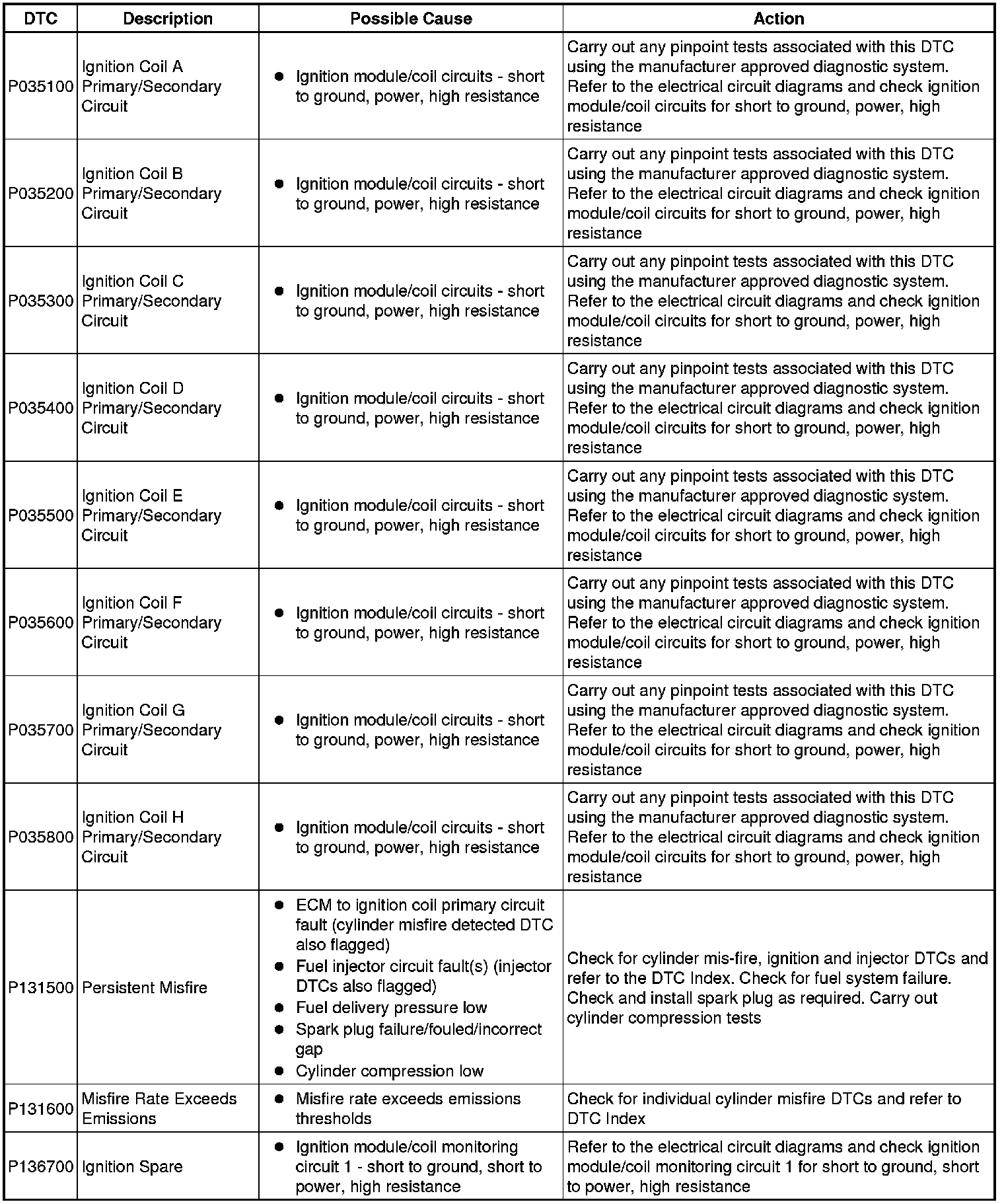 Generic scan tools may not read the codes listed, or may read only five digit codes. Match the five digits from the scan tool to the first five digits of the seven digit code listed to identify the fault (the last two digits give extra information read by the manufacturer-approved diagnostic system).