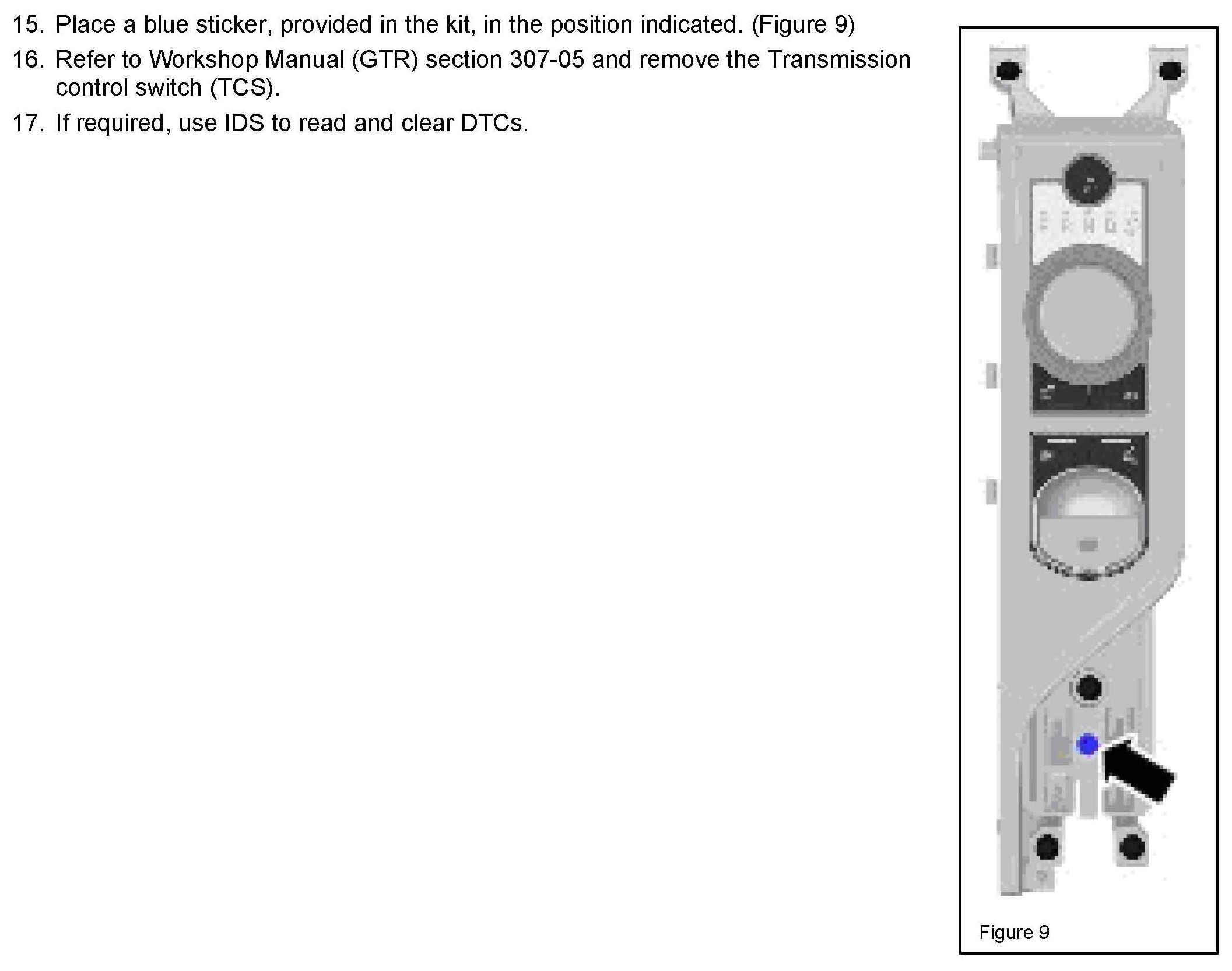 Vehicles fitted with a replacement transmission control switch since September 2009 are not affected; check DDW to ensure vehicle is affected by this Service Action prior to undertaking any rework action.