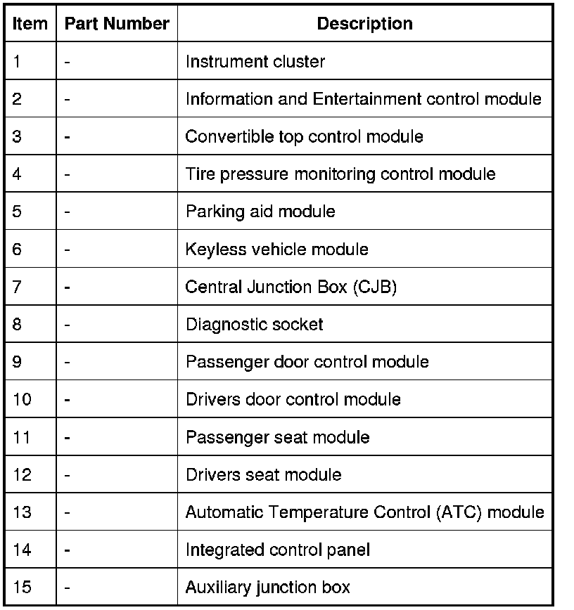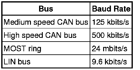 A number of different types of communication network are incorporated into the vehicle wiring harnesses for the transmission of commands and information between control modules. The configuration installed on a particular vehicle depends on the model and equipment level.