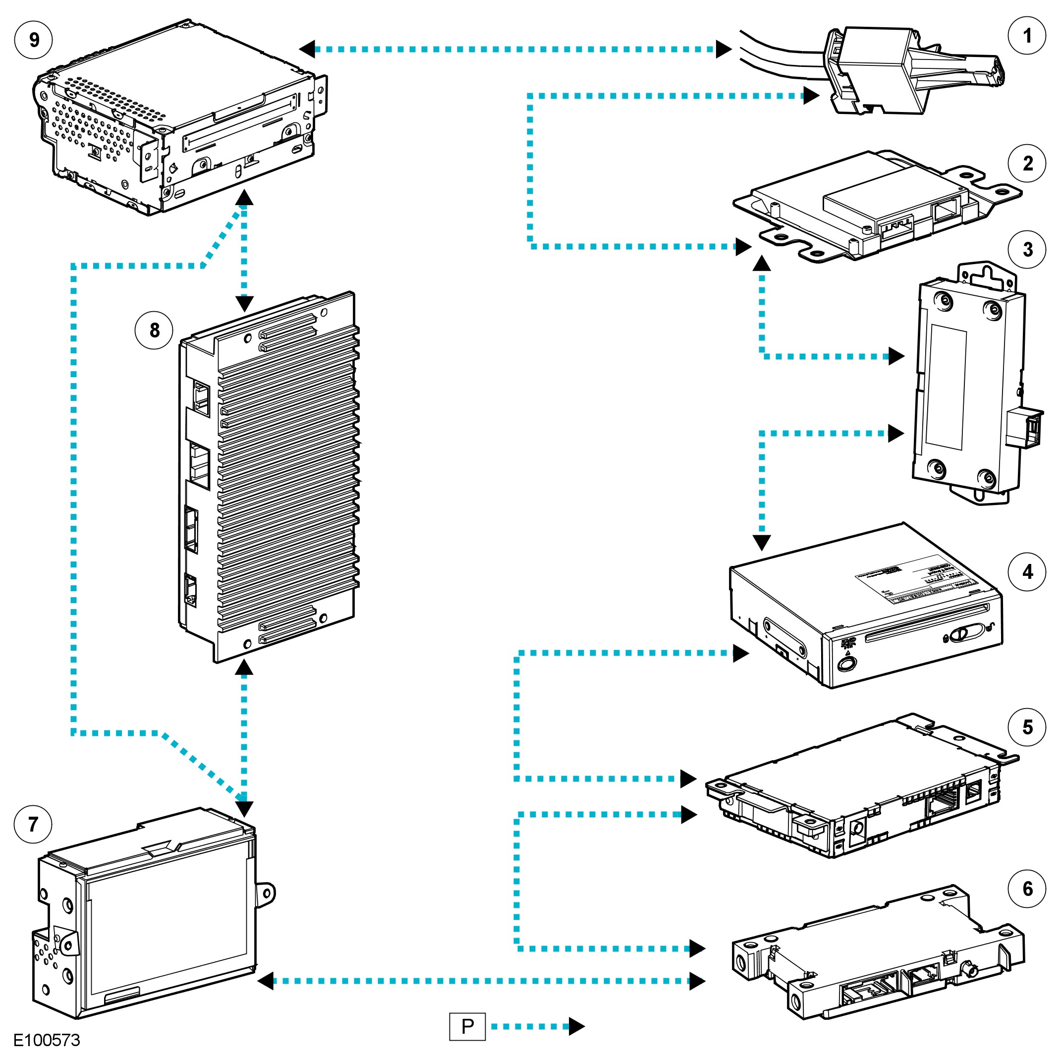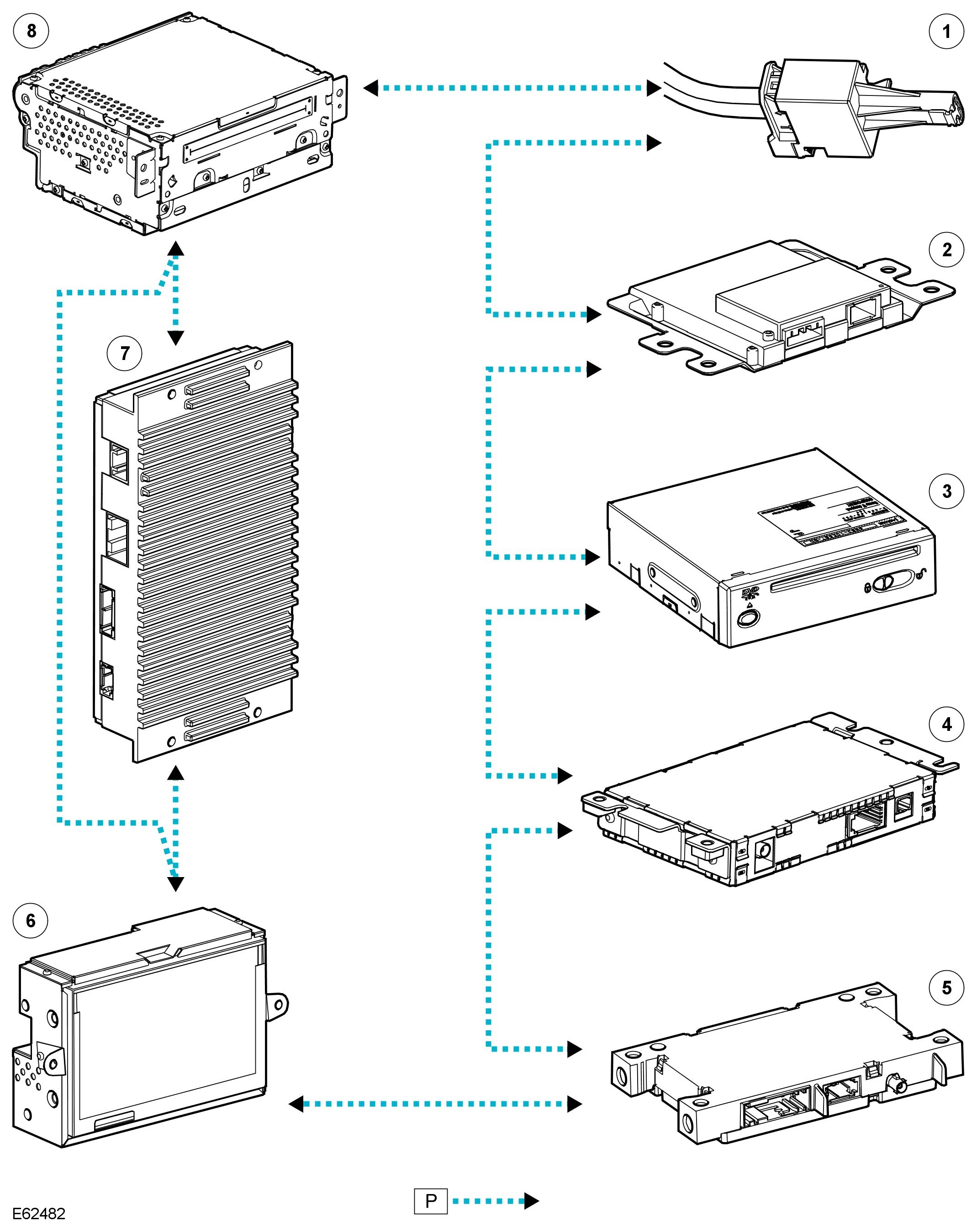 The MOST ring uses a fibre optic cable to transport data and audio around the information and entertainment system. The fibre optic cable is arranged in a ring, with each unit on the ring having a 'MOST in' and 'MOST out' connection.