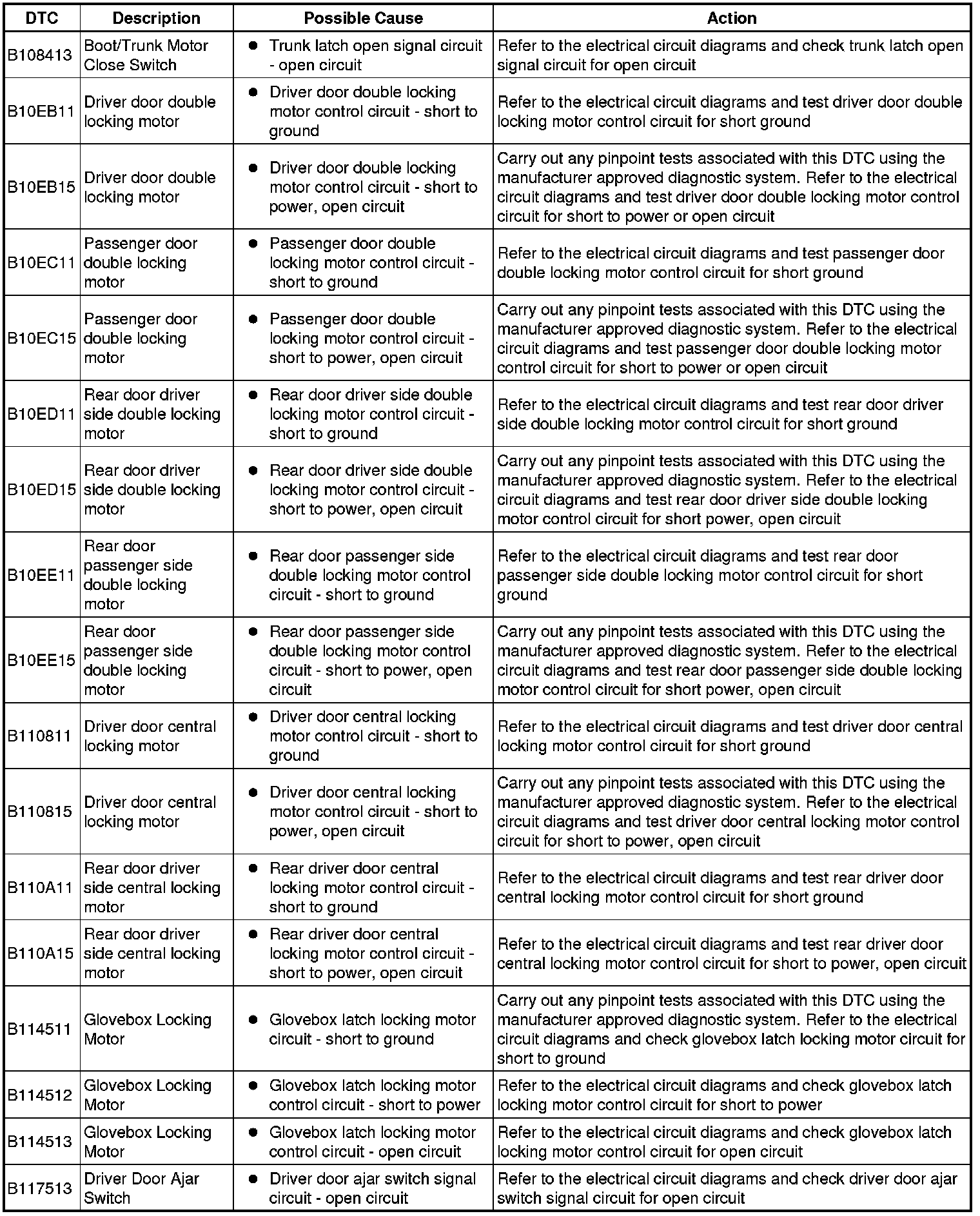 Generic scan tools may not read the codes listed, or may read only five digit codes. Match the five digits from the scan tool to the first five digits of the seven digit code listed to identify the fault (the last two digits give additional information read by the manufacturer approved diagnostic system).