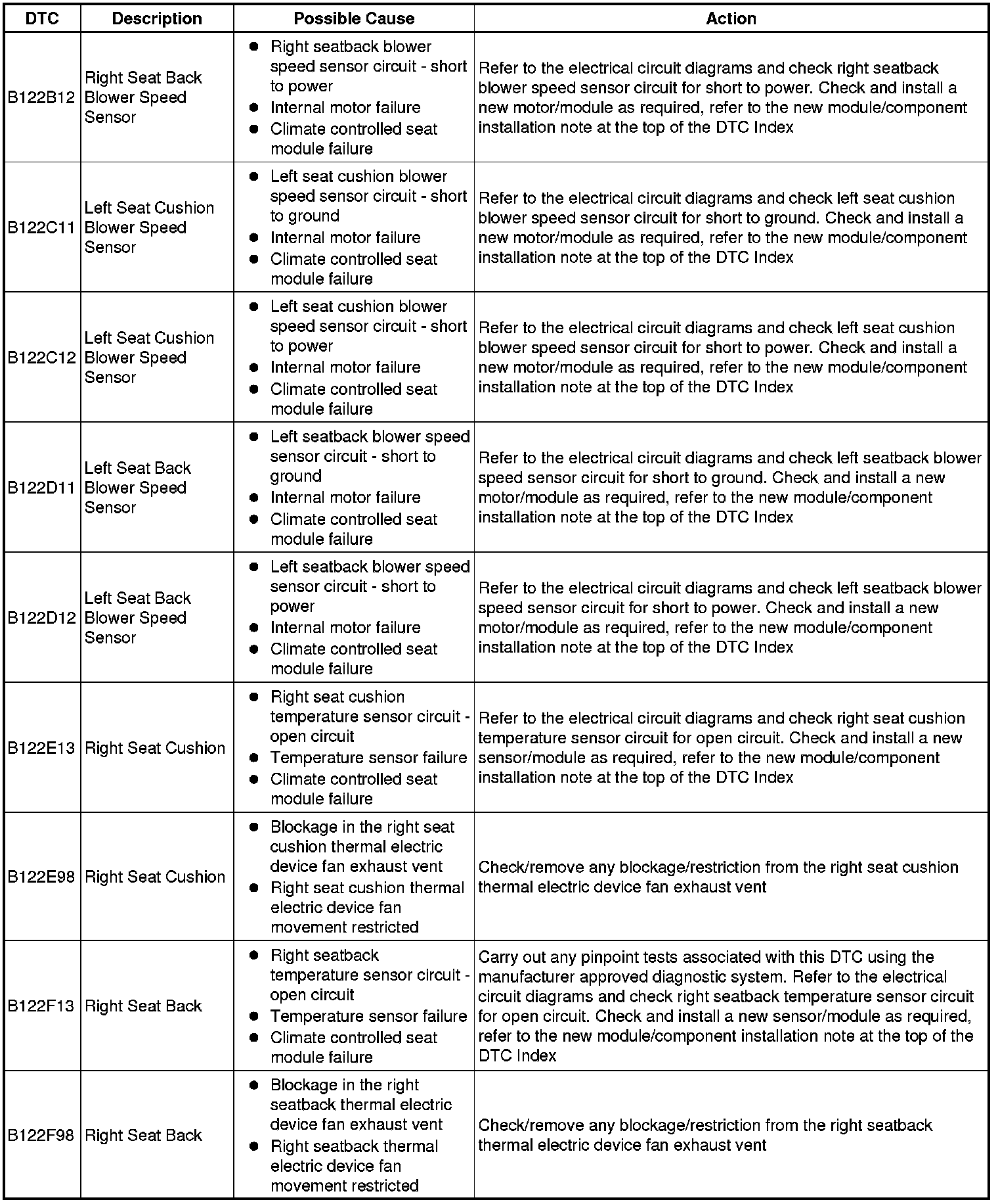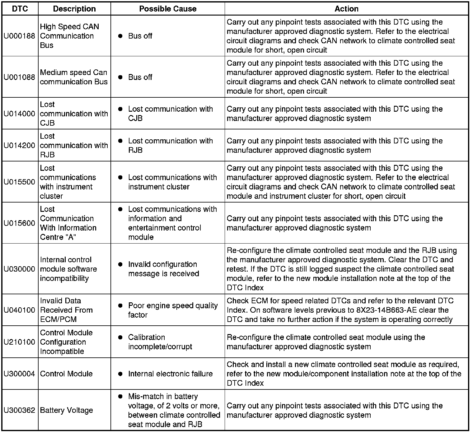 Generic scan tools may not read the codes listed, or may read only five digit codes. Match the five digits from the scan tool to the first five digits of the seven digit code listed to identify the fault (the last two digits give additional information read by the manufacturer approved diagnostic system).