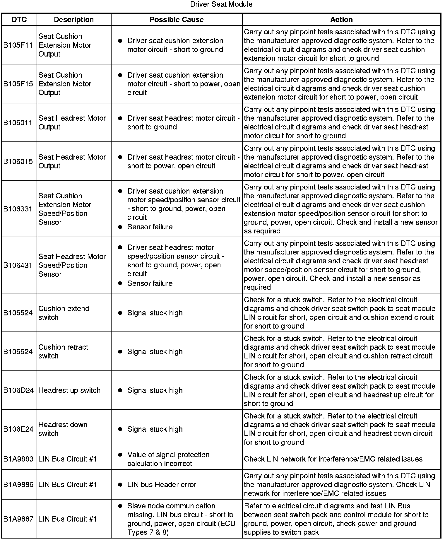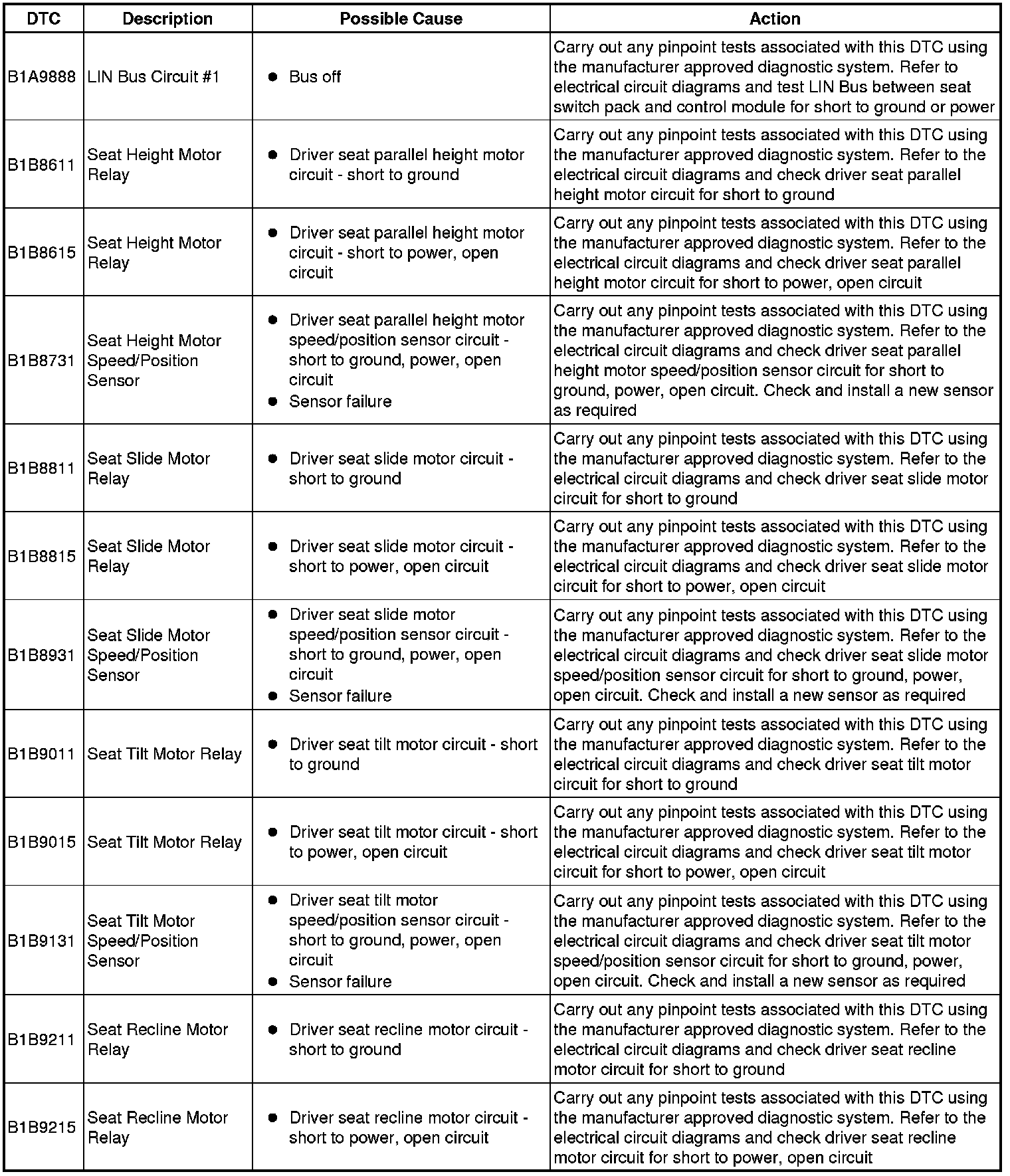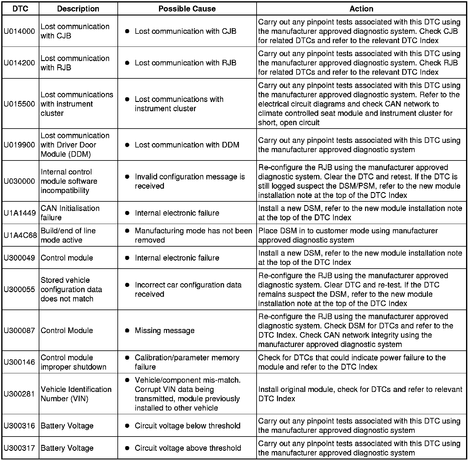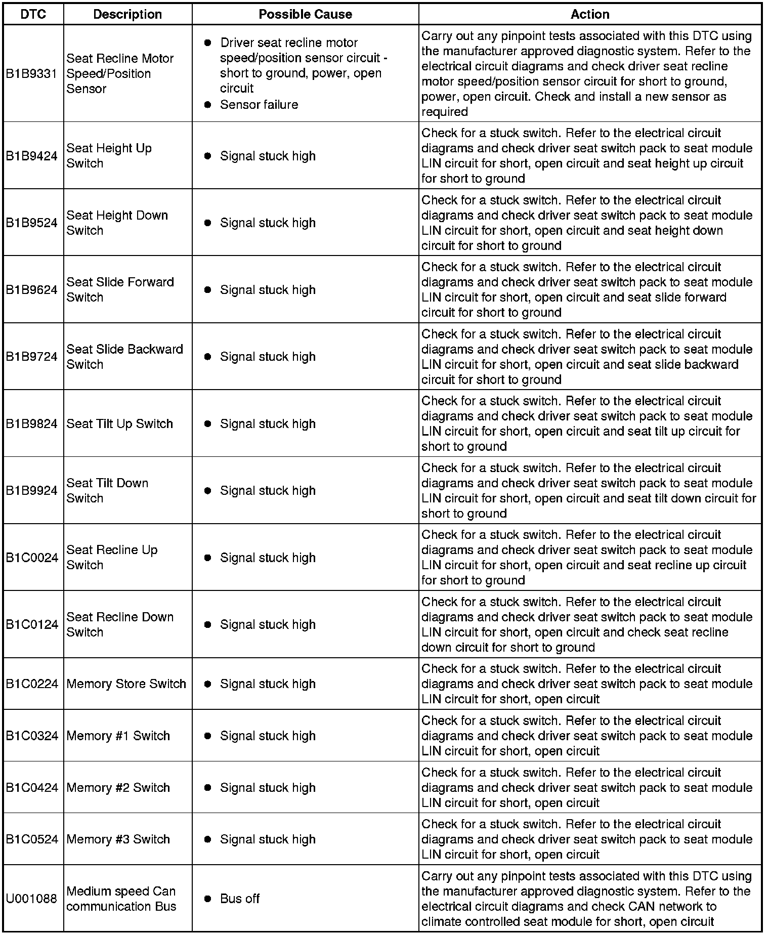 Generic scan tools may not read the codes listed, or may read only five digit codes. Match the five digits from the scan tool to the first five digits of the seven digit code listed to identify the fault (the last two digits give additional information read by the manufacturer approved diagnostic system).