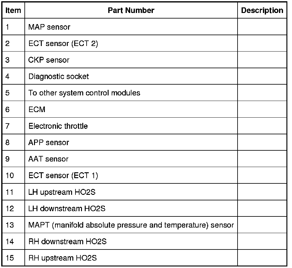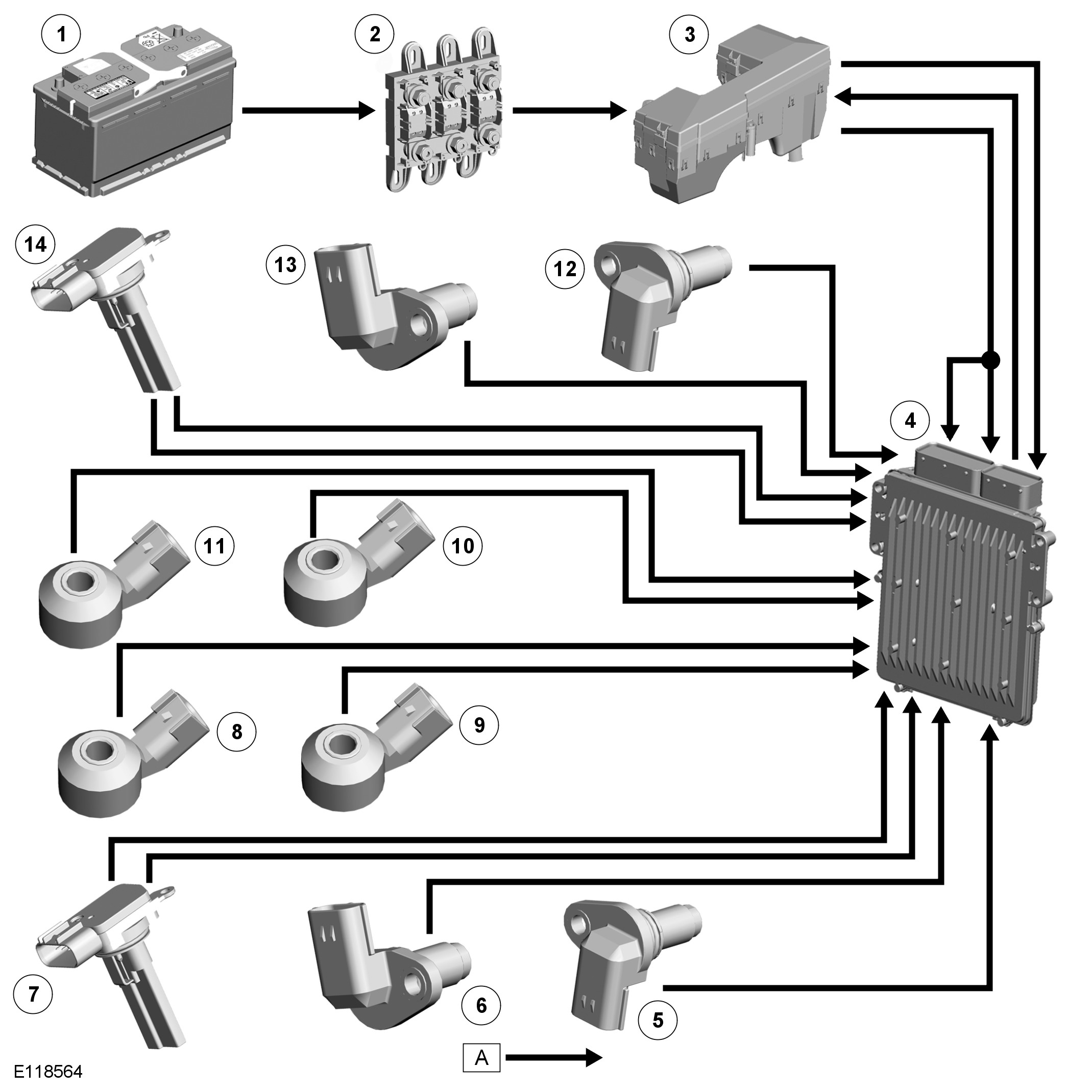 ECT 1 is installed in the heater manifold, at the rear of the RH (right-hand) cylinder head. The input from this sensor is used in calibration tables and by other systems.