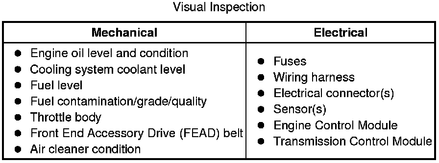 4 If the cause is not visually evident, verify the customer concern and refer to the Symptom Chart below, alternatively, check for Diagnostic Trouble Codes (DTCs) and refer to the DTC Index.