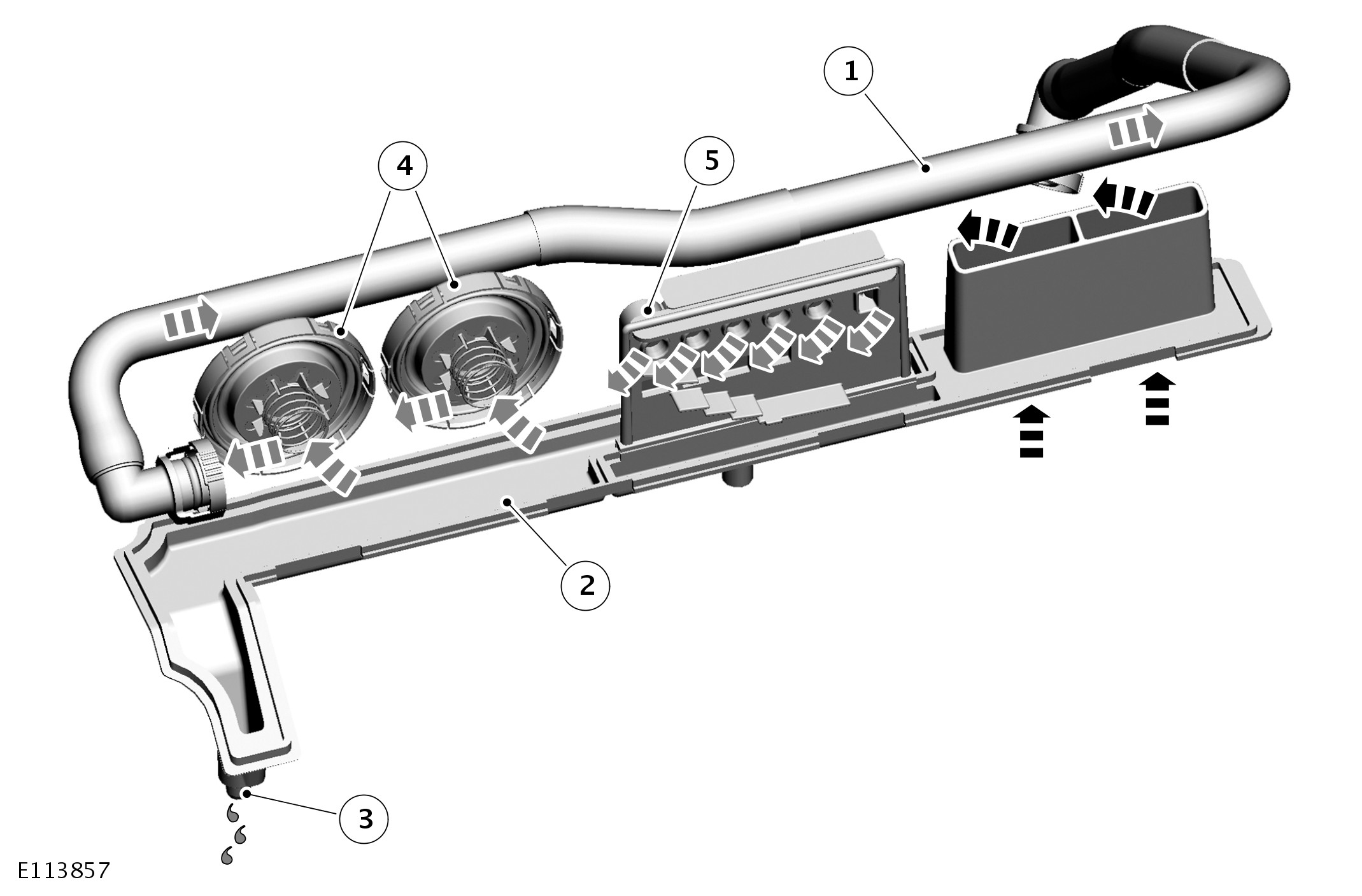 The full load breather consists of an oil separator, a two-way valve and a flexible hose. The oil separator and the two-way valve are installed in the top of the LH (left-hand) cylinder head cover. The flexible hose connects the LH (left-hand) cylinder head cover to the LH (left-hand) air duct of the intake air distribution and filtering system.