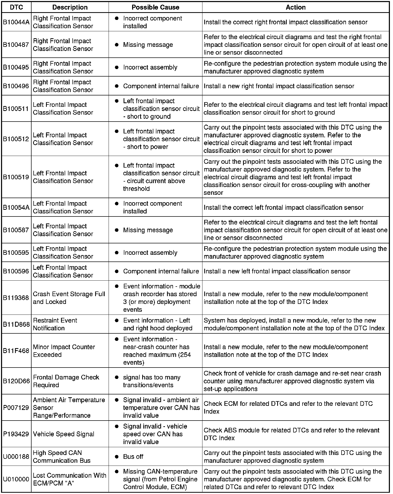 Generic scan tools may not read the codes listed, or may read only five digit codes. Match the five digits from the scan tool to the first five digits of the seven digit code listed to identify the fault (the last two digits give additional information read by the manufacturer approved diagnostic system).