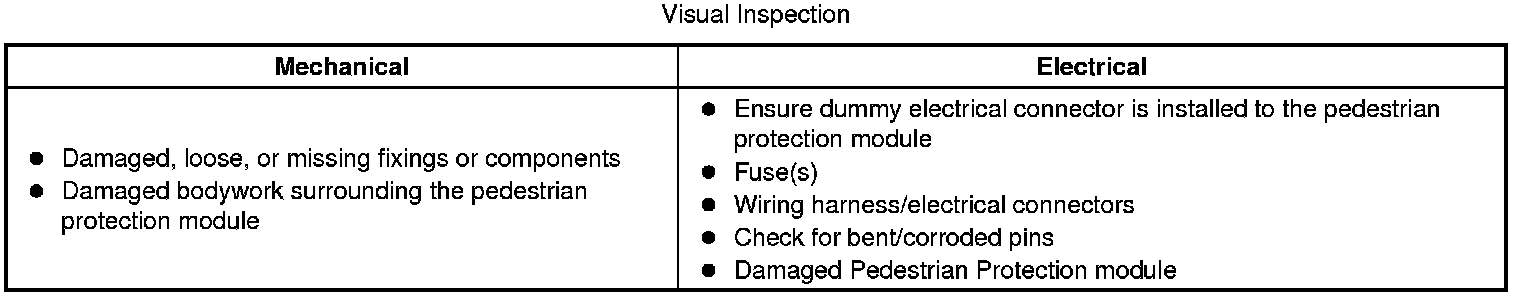 CAUTION: Prior to carrying out any pinpoint tests on the pedestrian protection system the back-up power supply must be depleted. Disconnect the battery and wait two minutes for the back-up power supply to deplete.