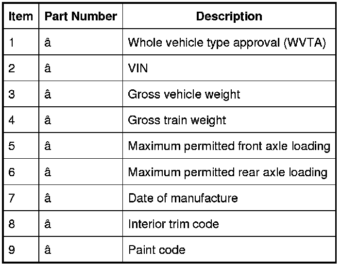 VIN Label (Saudi Arabia and Gulf States)