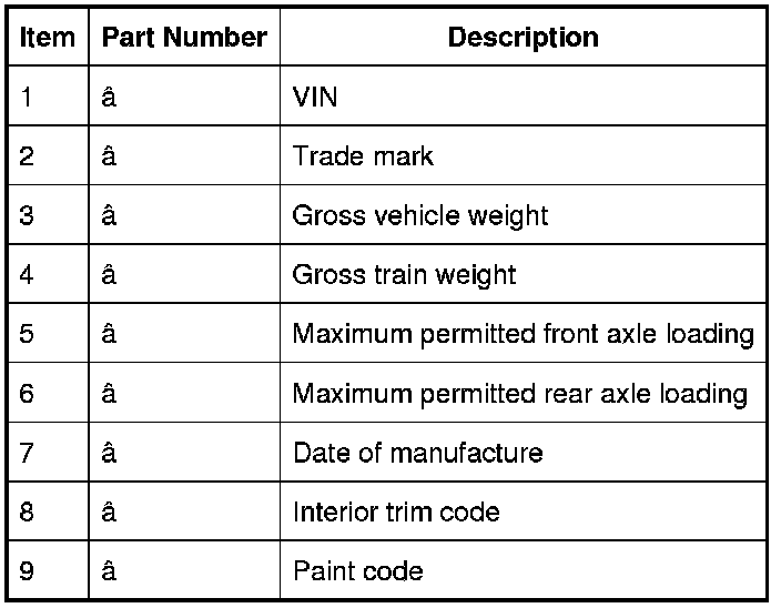 Vehicle Identification Number (Typical)