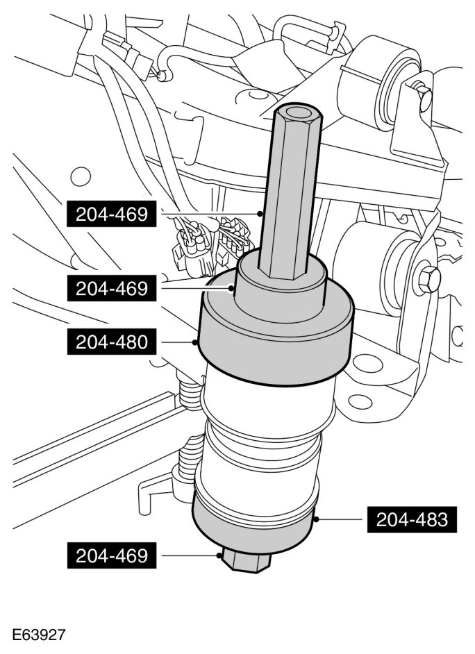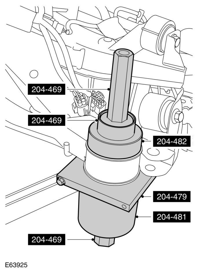 2 Install the rear subframe. For additional information, refer to Rear Subframe - 4.2L