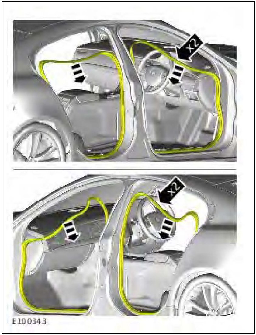 2. Release all door seals. (RHD shown; LHD similar)