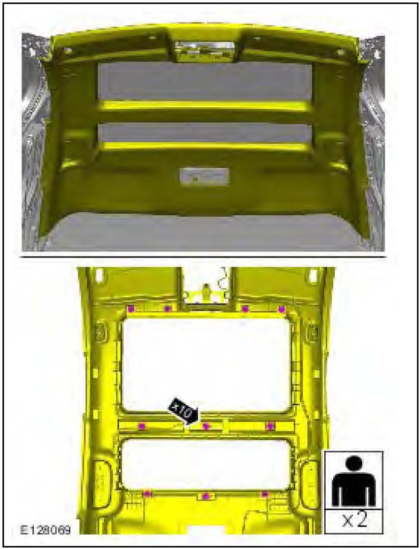 Ensure the headliner is fully supported and that the electrical harnesses are not damaged during headliner lowering.