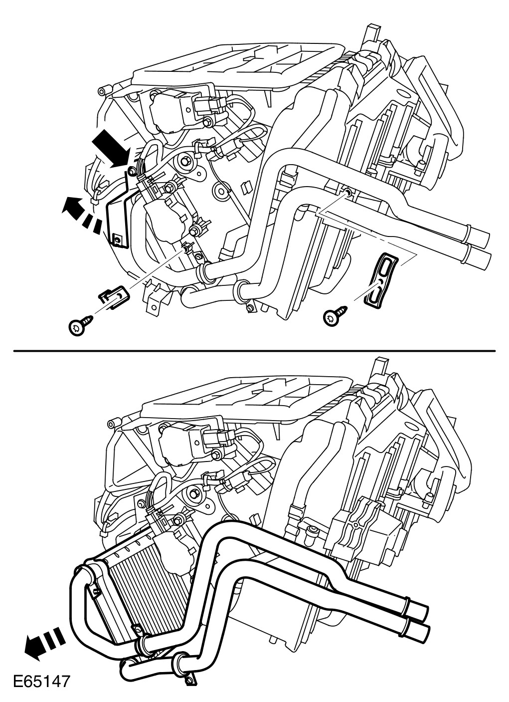 3 Remove the heater and evaporator core housing. For additional information, refer to Heater Core and Evaporator Core Housing Service and Repair