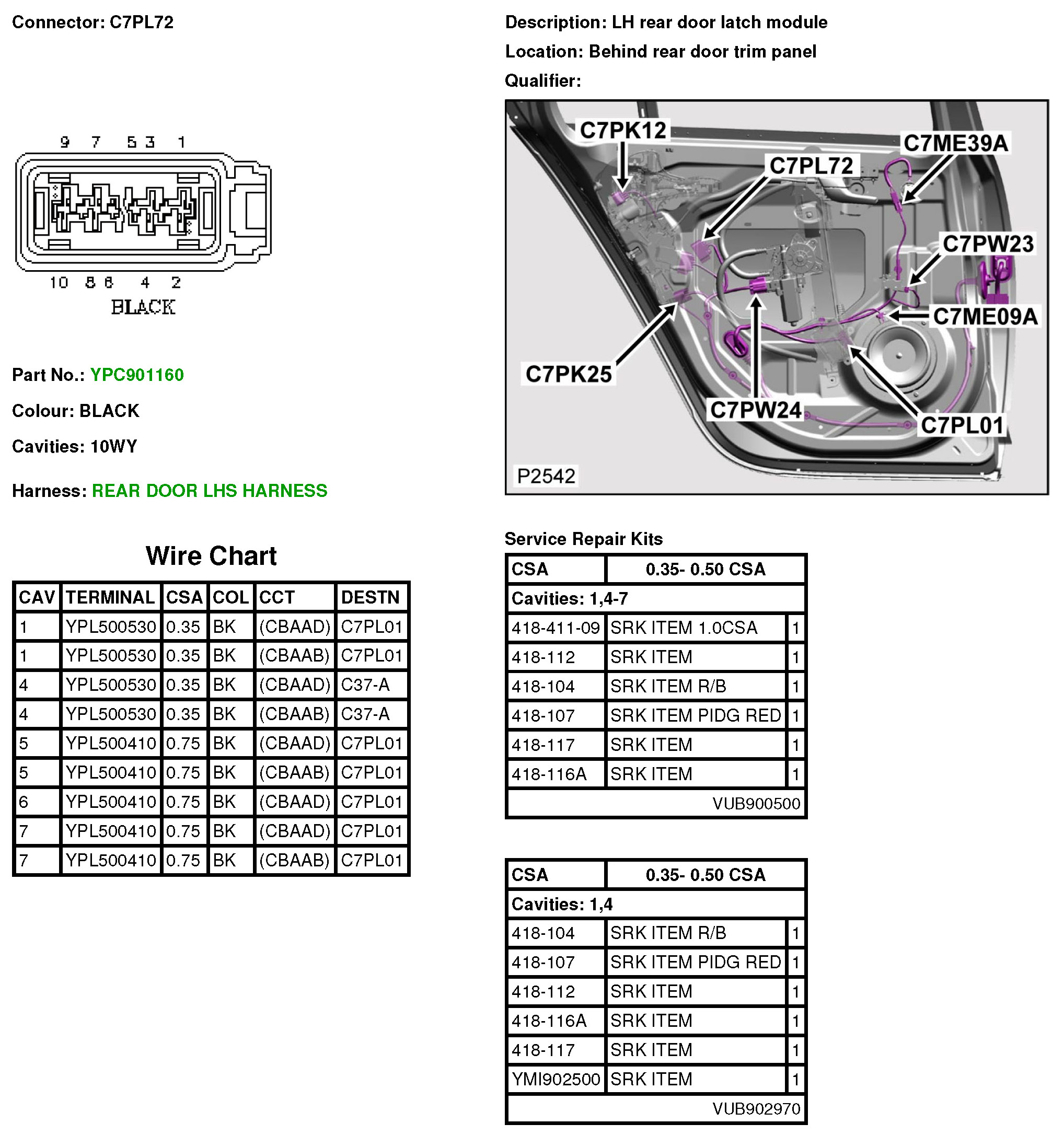 C7PL72 LH Rear Door Latch Module