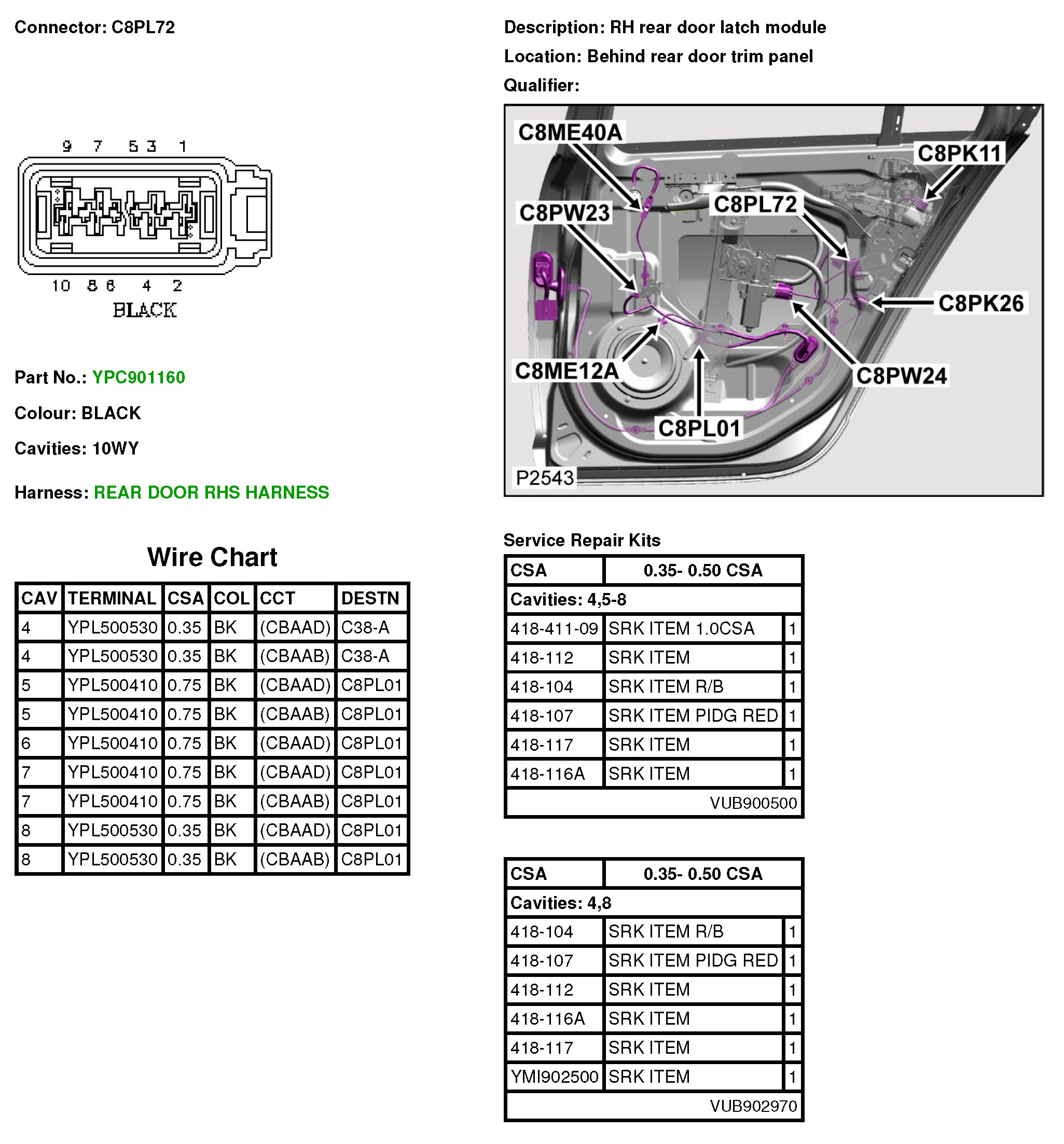 C8PL72 RH Rear Door Latch Module