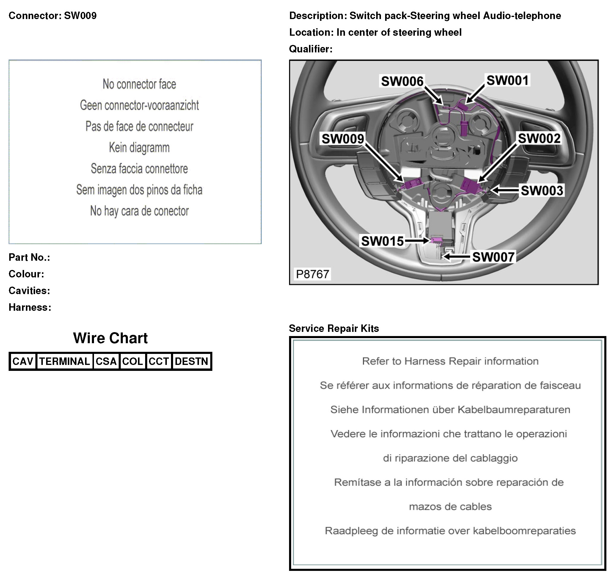 SW009 Switch Pack-Steering Wheel Audio-Telephone