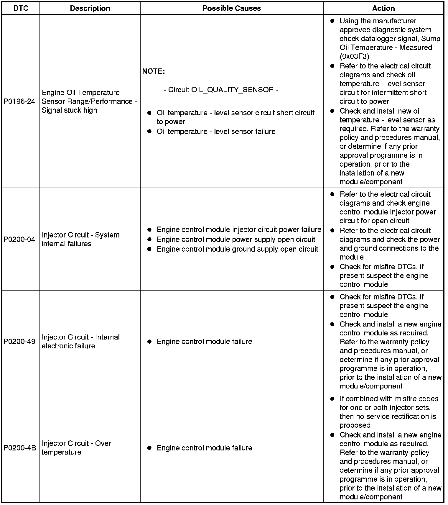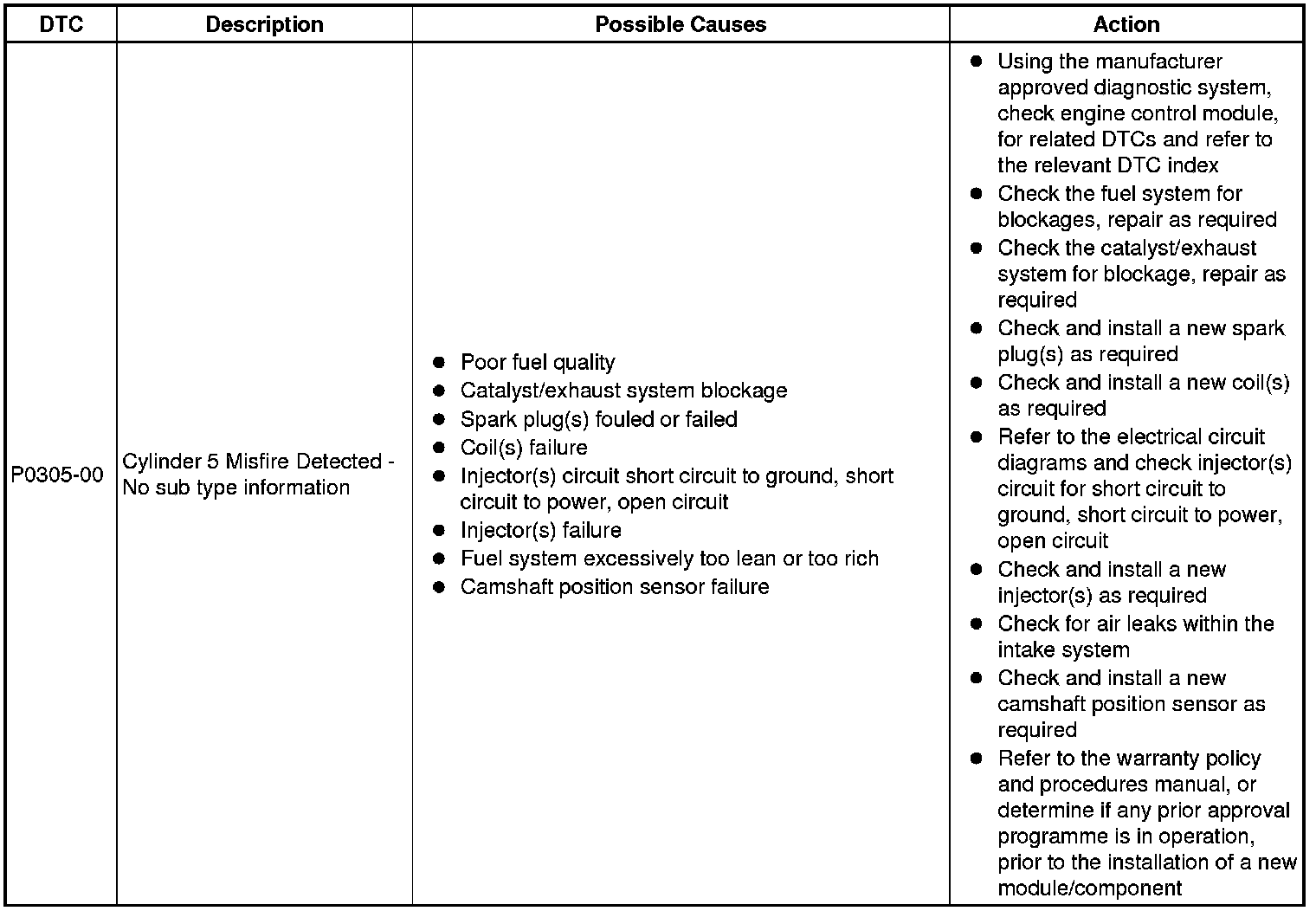 Diagnostic Trouble Code (DTC) Index