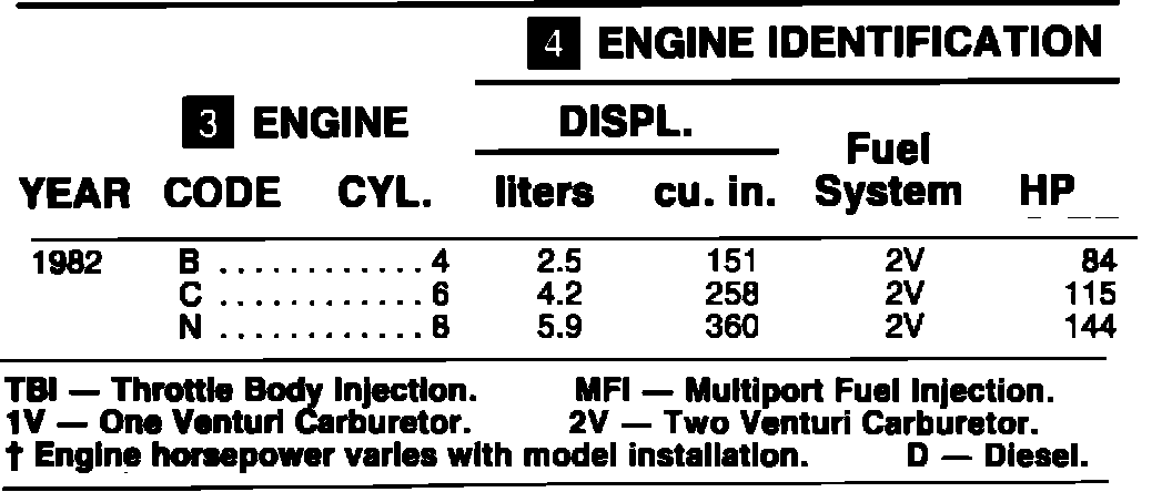 4 ENGINE IDENTIFICATION: On the line where the engine code appears, read to the right to identify the engine.