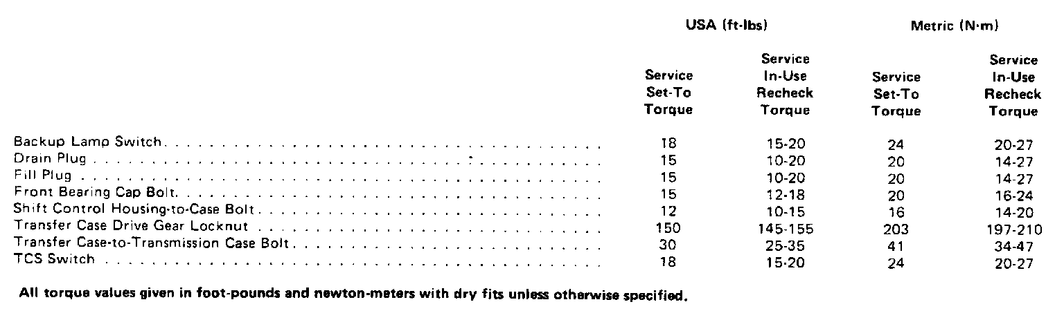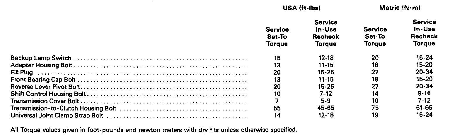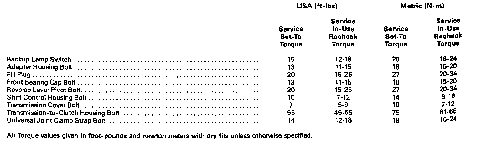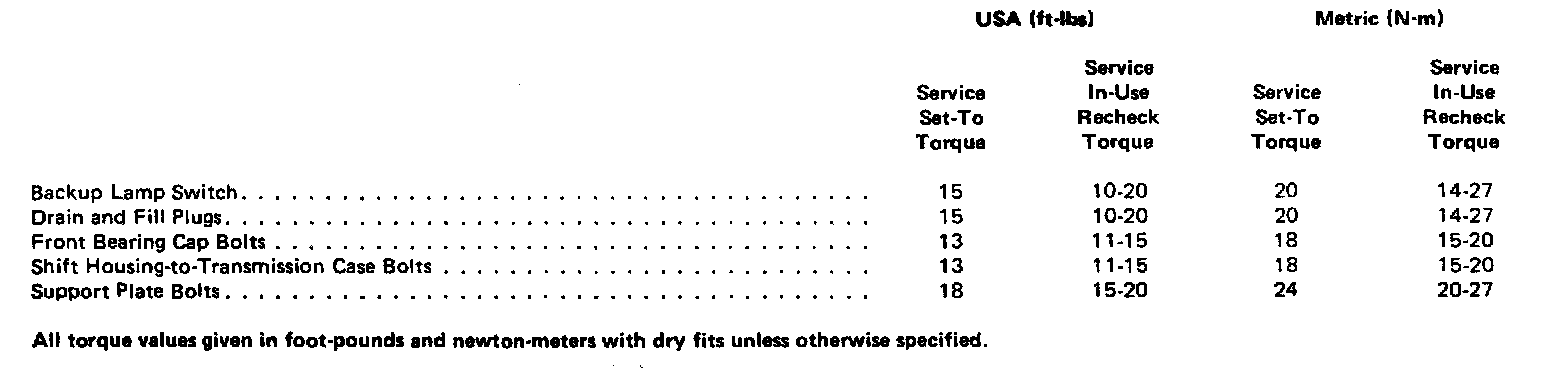 Model T-18A Torque Specifications: