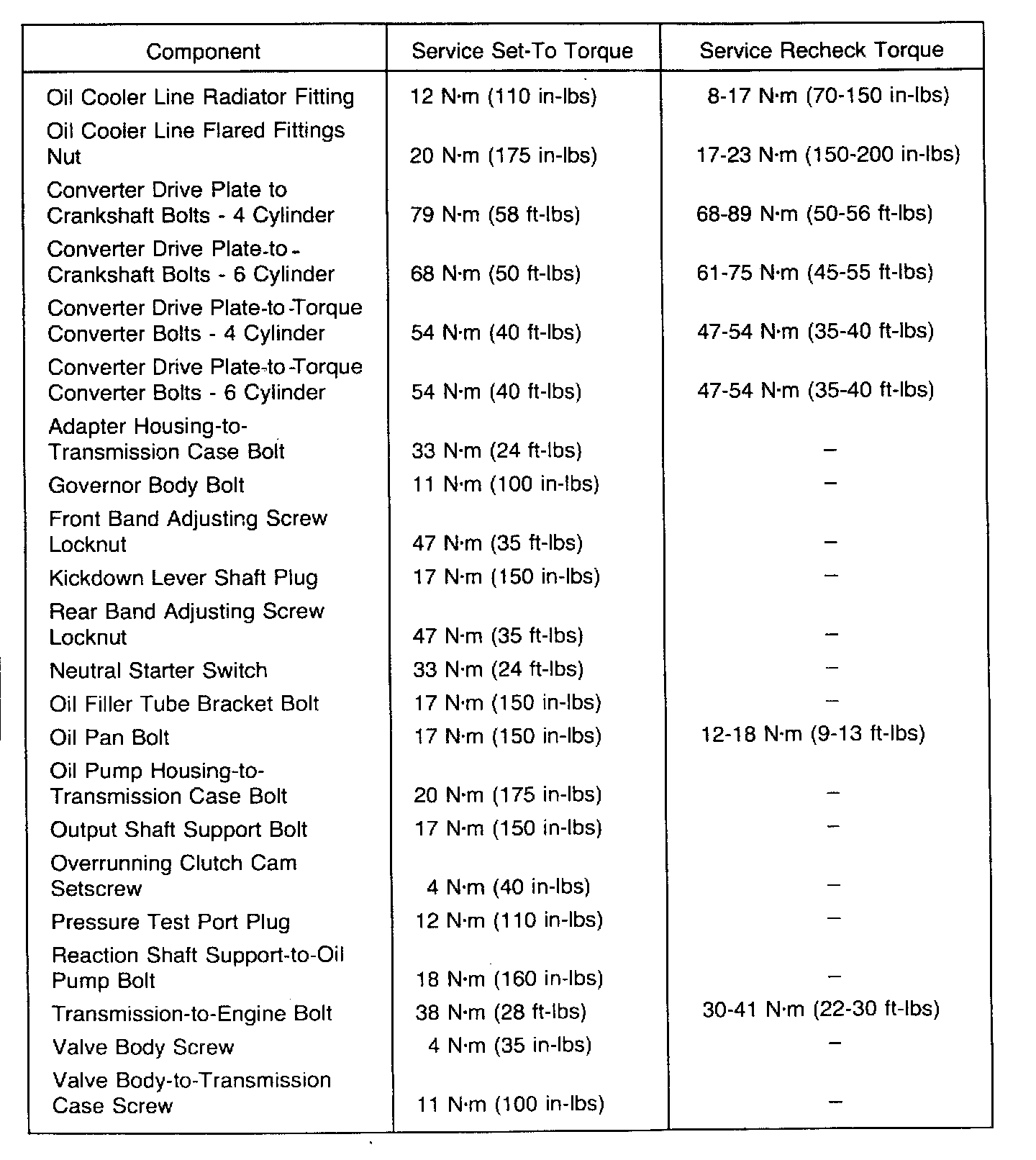 Torque Specifications