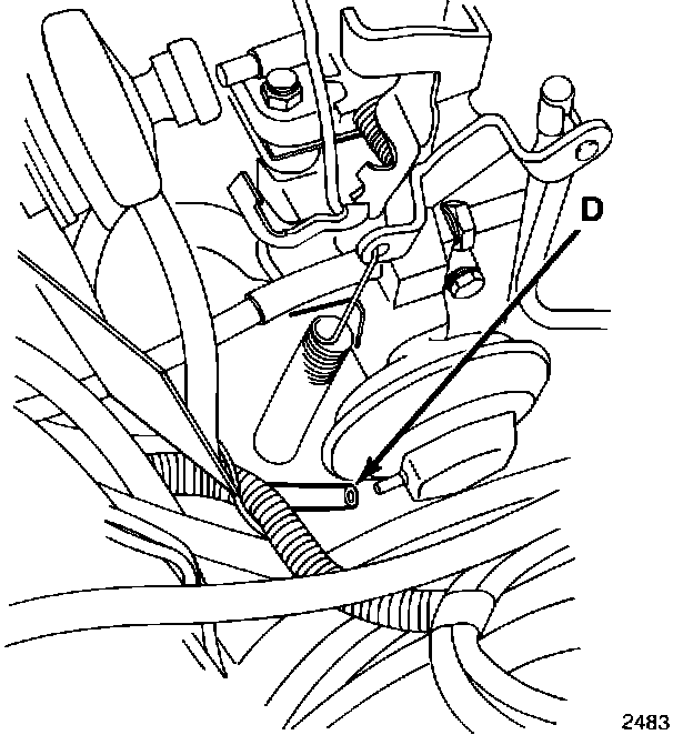 1. Disconnect and plug the EGR valve vacuum hose (D).