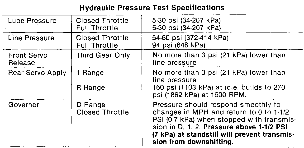 Hydraulic Pressure Specifications: