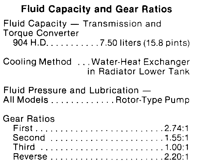 The model 904 H-D. transmission has a wide ratio planetary gear set Ratios are: