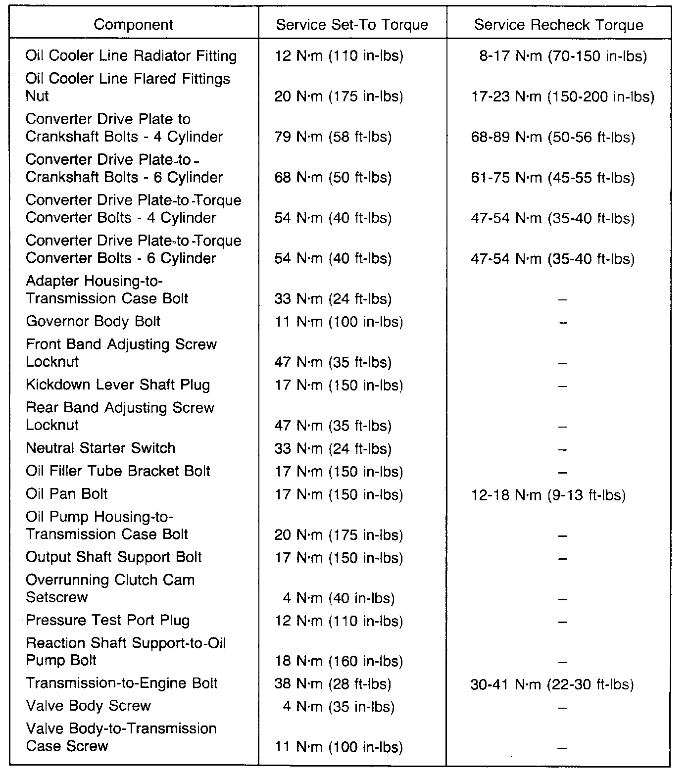 Torque Specifications: