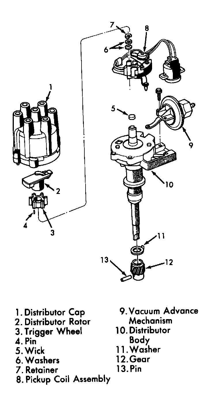 8. If the vacuum advance mechanism is to he replaced, remove the screws and lift the mechanism out of the distributor housing. Do not remove the vacuum advance mechanism unless replacement is required.