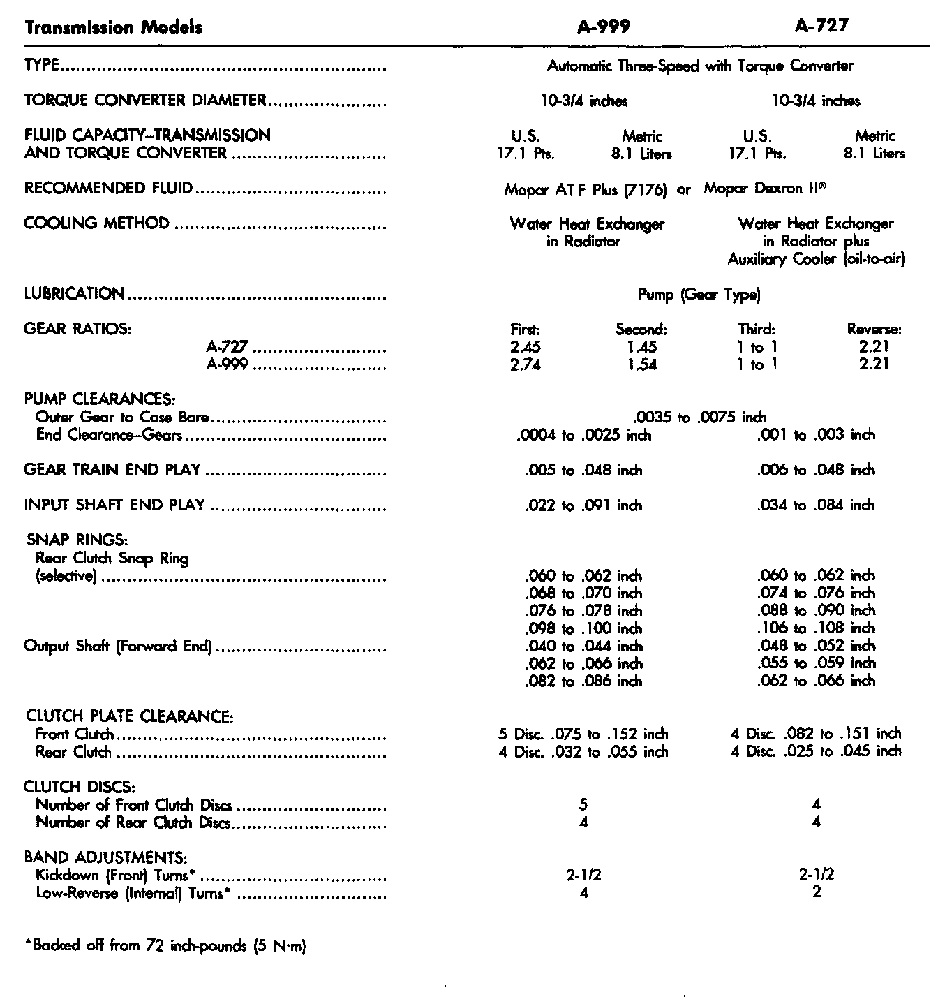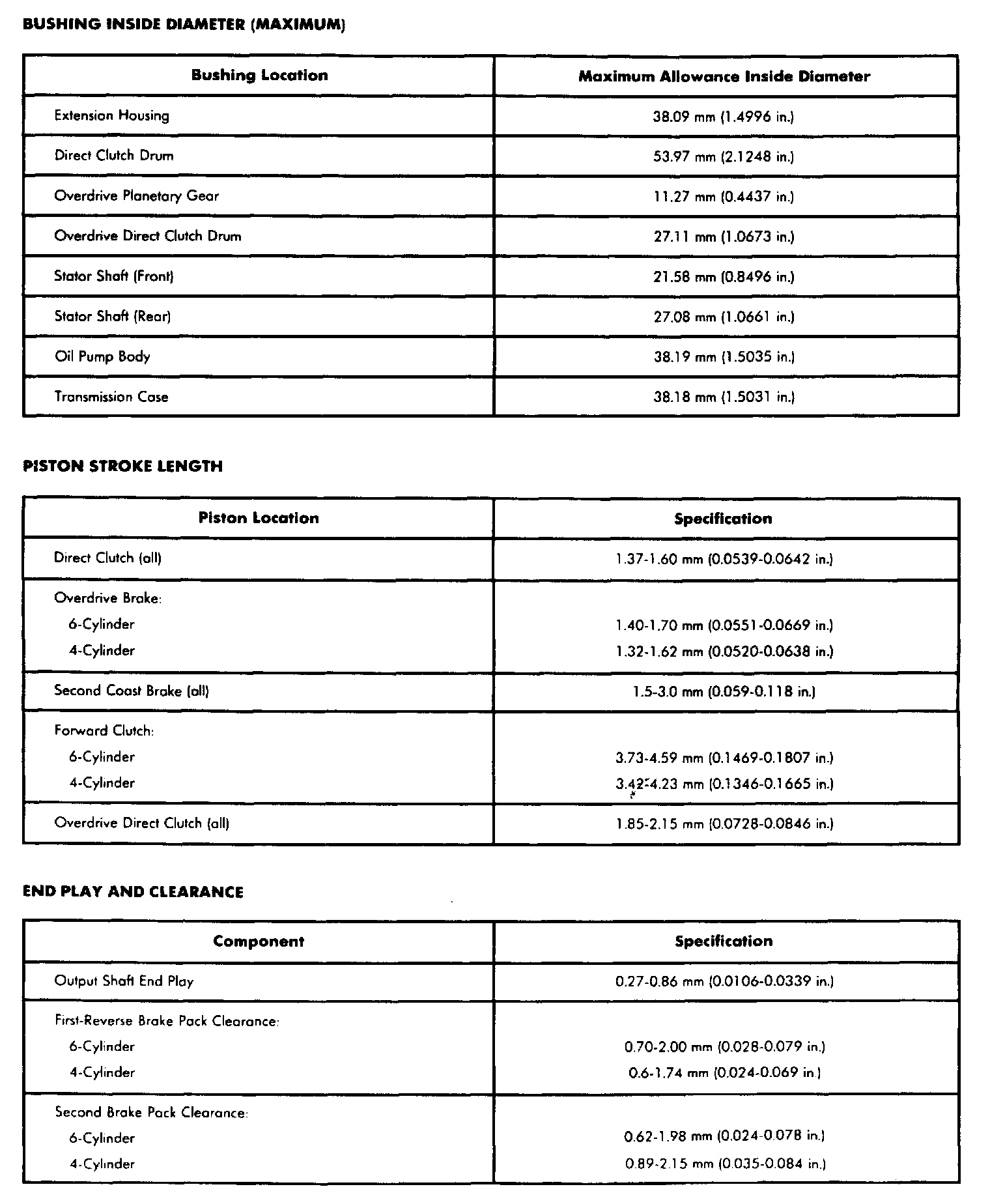 Bushing And Piston Clearance Specifications: