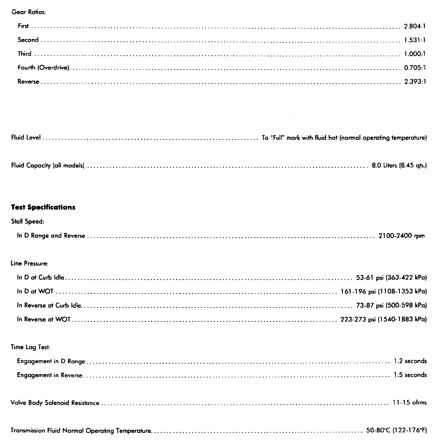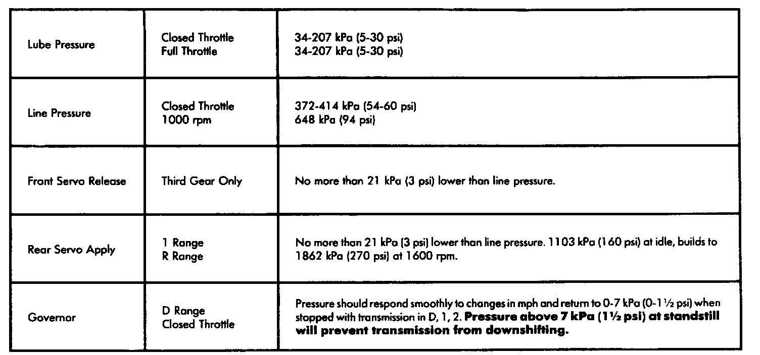 Pressure Test Specifications: