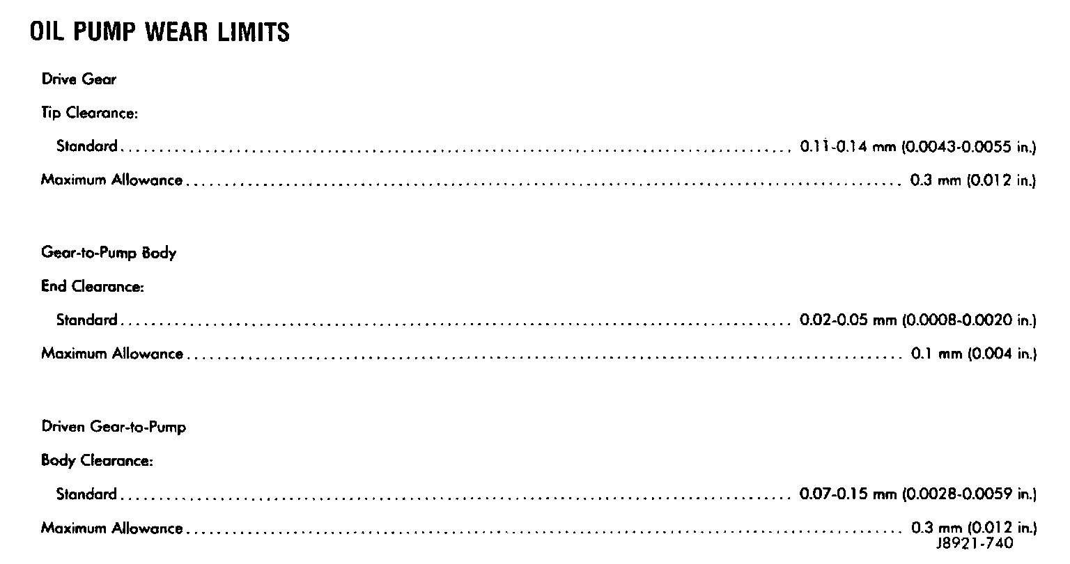 Oil Pump Wear Limits: