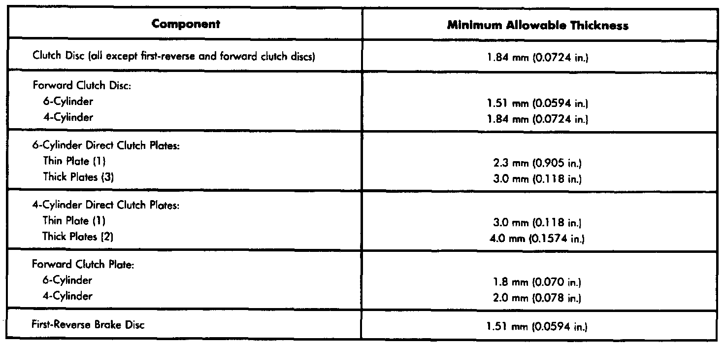 Clutch Disc And Plate Thickness Specifications: