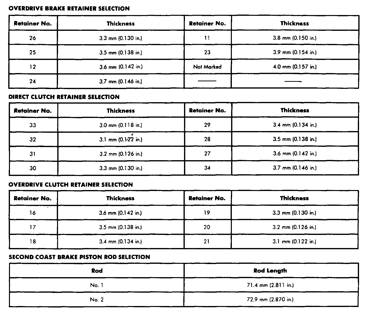 Retainer And Piston Specifications: