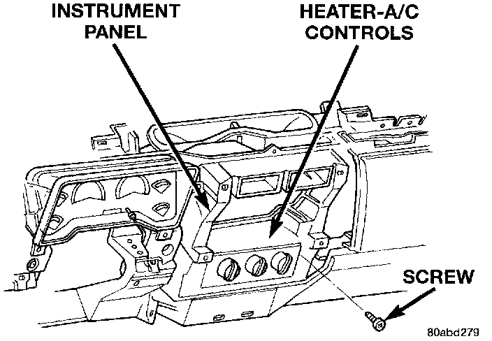 7. Remove the four screws that secure the heater- A/C control to the instrument panel.