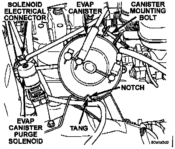 EVAP Canister Location, On Left Front Inner Fender.: