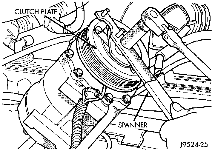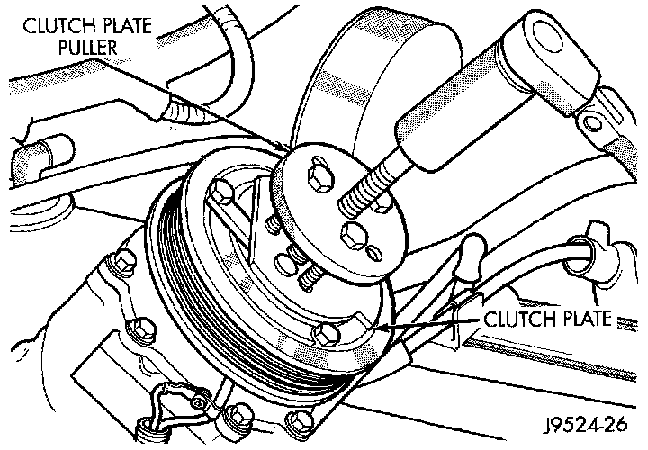 The refrigerant system can remain fully-charged during compressor clutch, pulley, or coil replacement. The compressor clutch can be serviced in the vehicle.REMOVAL