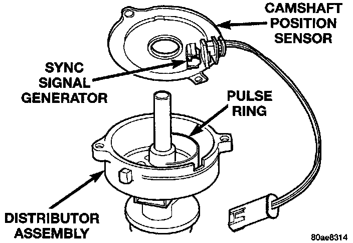 5. Lift camshaft position sensor assembly from distributor housing.