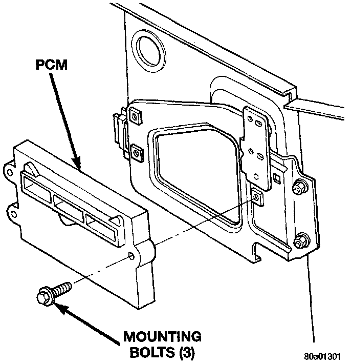 5. Remove the three PCM mounting bolts (Fig. 79).