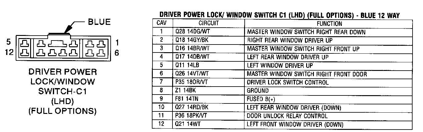 Driver Power Lock/Window Switch - C1 (LHD) (Full options) - Blue 12 Way