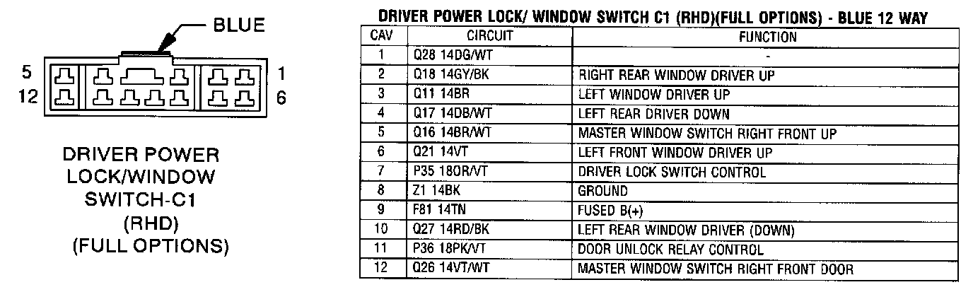 Driver Power Lock/Window Switch - C1 (RHD) (Full options):