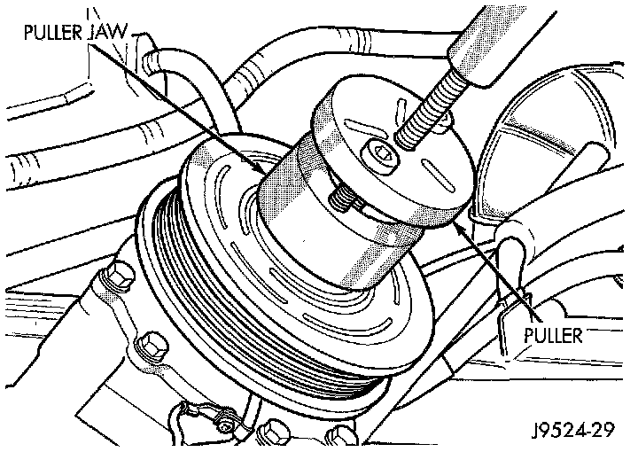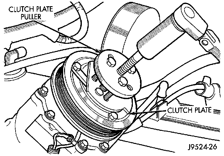 The refrigerant system can remain fully-charged during compressor clutch, pulley, or coil replacement. The compressor clutch can be serviced in the vehicle.REMOVAL