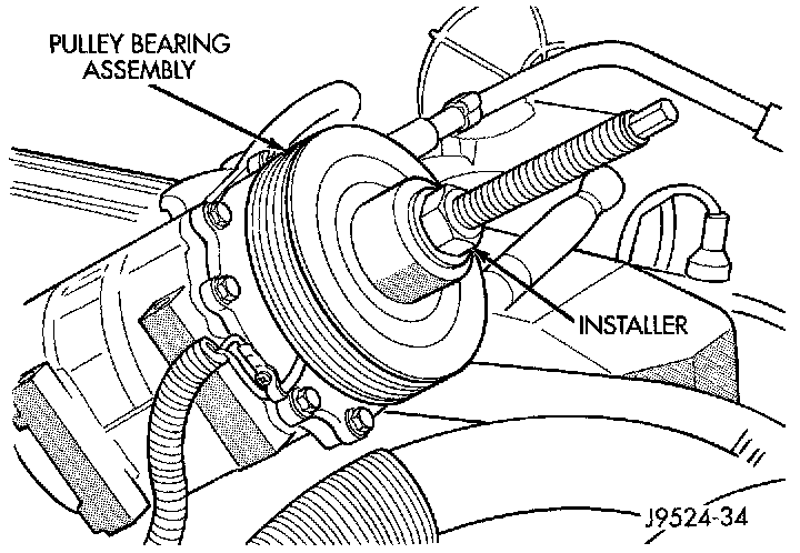 4. Install the pulley bearing assembly with the installer (Special Tool C-6871). Thread the installer on the shaft, then turn the nut until the pulley assembly is seated.