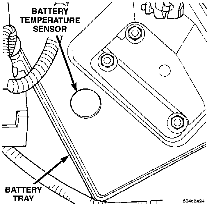 The battery temperature sensor is located under vehicle battery and is attached to a mounting hole on battery tray.